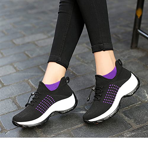 Bestgift Damesschoenen Casual Sportschoenen Schommelschoenen Sokken Schoenen Casual veterschoenen Dikke Bodem Schoenen