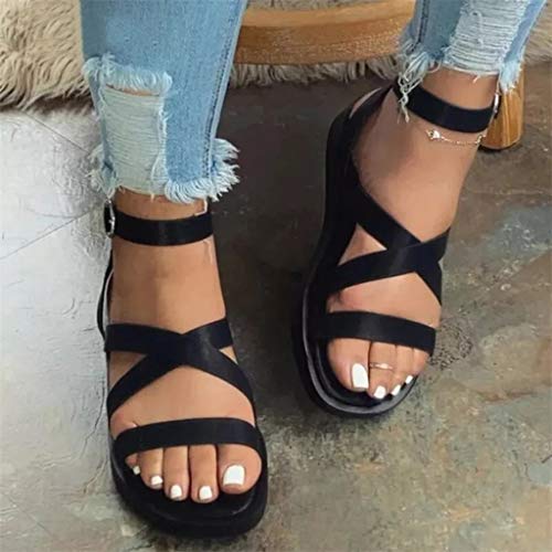 Sandalen voor dames, casual, blokhak, effen, hoge hakken, riempjessandalen, Romeinse sandalen, avondschoenen, open tenen, flipflop plateauzool, strandschoenen, damesschoenen, zomerschoenen, damesschoenen, pumps, dames, zomer, modern, retro, ronde kop, holle dikke hak, gesp, comfortabele sandalen