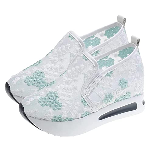 Specificaties: piccante LINGJIONG Gymschoenen van doorzichtig mesh met bloemenborduurwerk, modieuze gymschoenen met sleehak – ademende, casual, sportieve tennisschoenen voor dames, Naixue