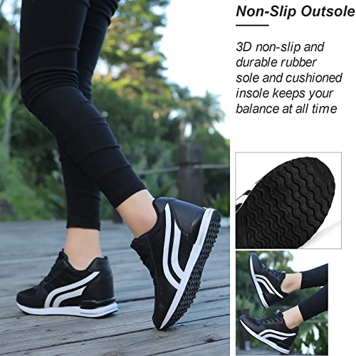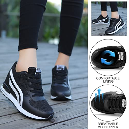 Specificaties: KOWAYI Damessneakers met sleehak 7 cm lichte wandelschoenen ademende sportschoenen gymschoenen vrijetijdsschoenen comfortabele sleehak schoenen dames